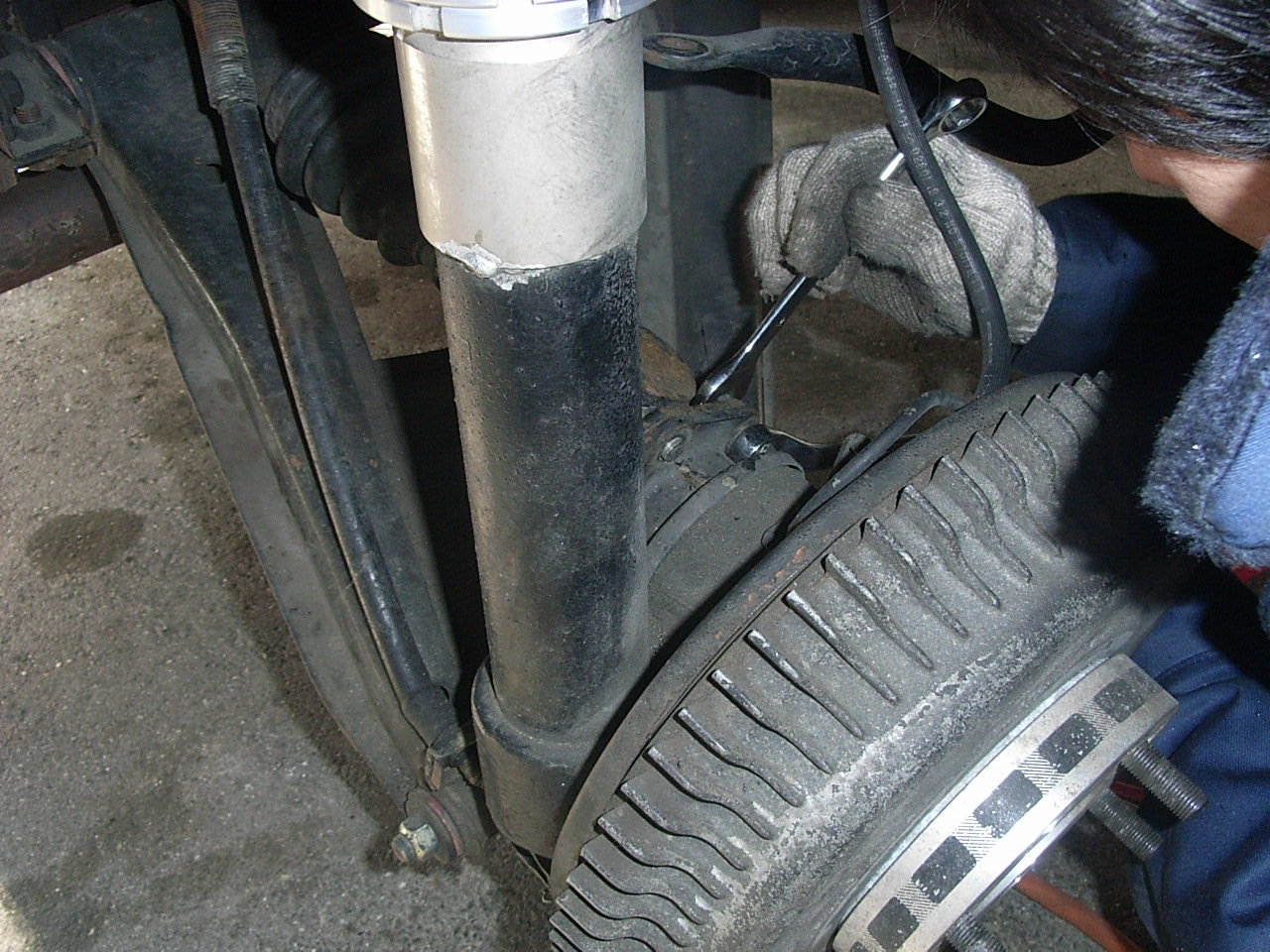 ストラットの下からパンダジャッキで持ち上げてやって、 |
